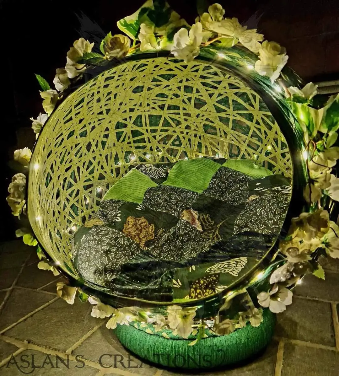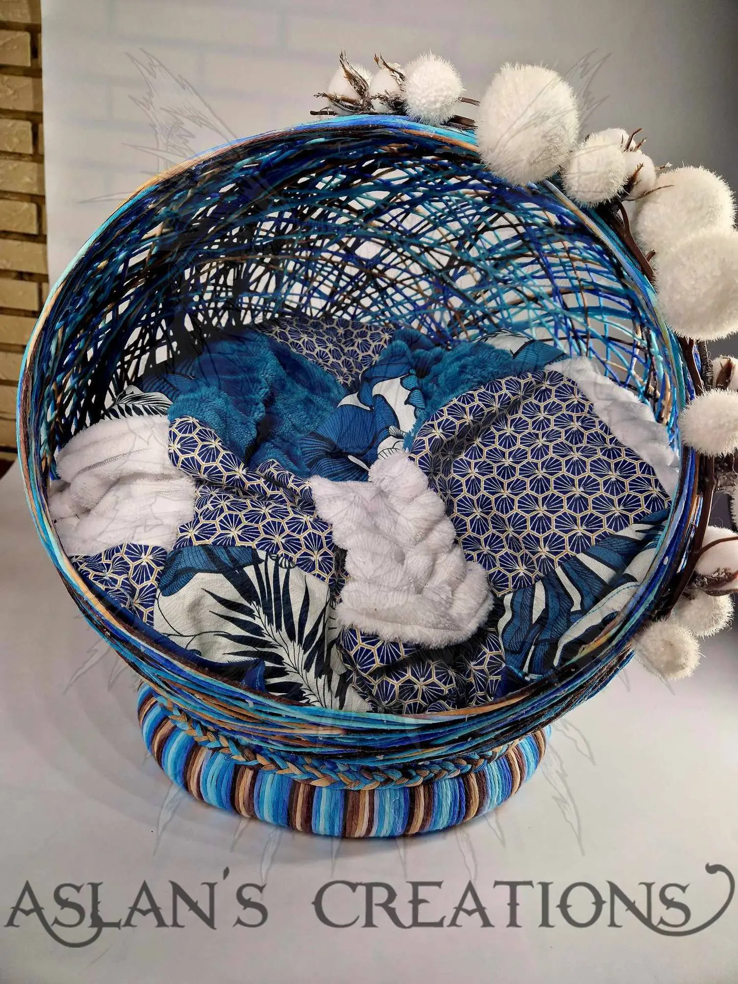 Ce panier se présente sous la forme d’une sphère rigide, réalisée en fils ou en rubans selon votre préférence :